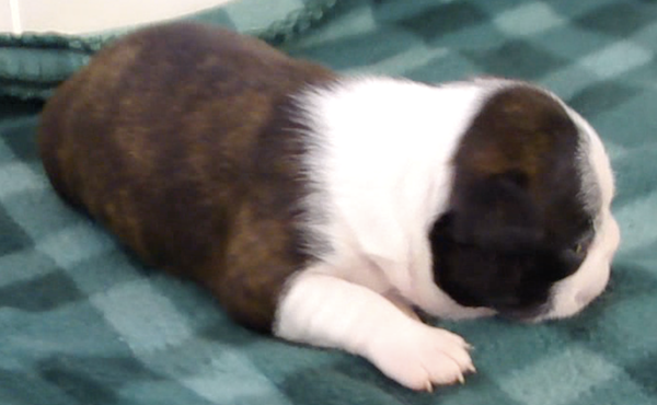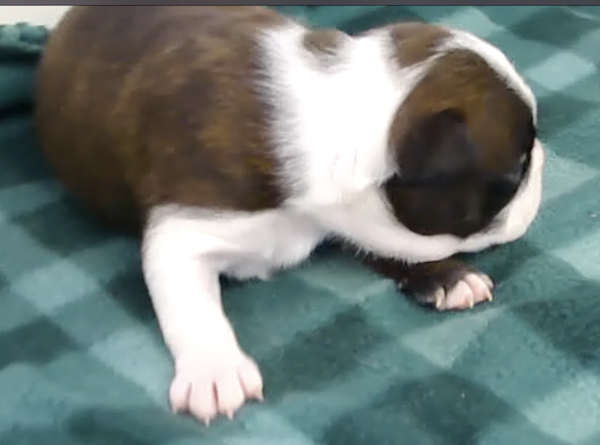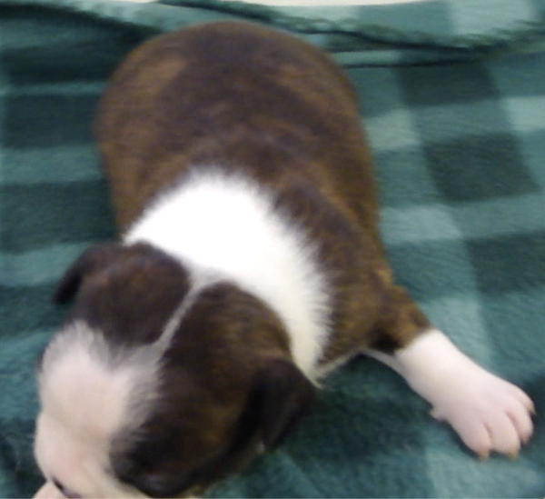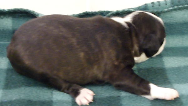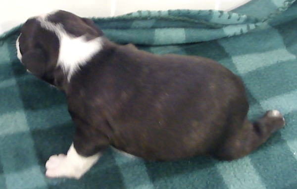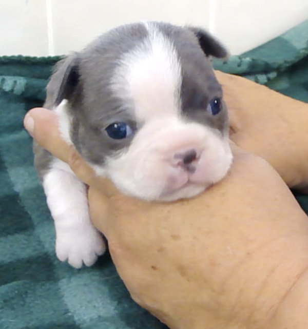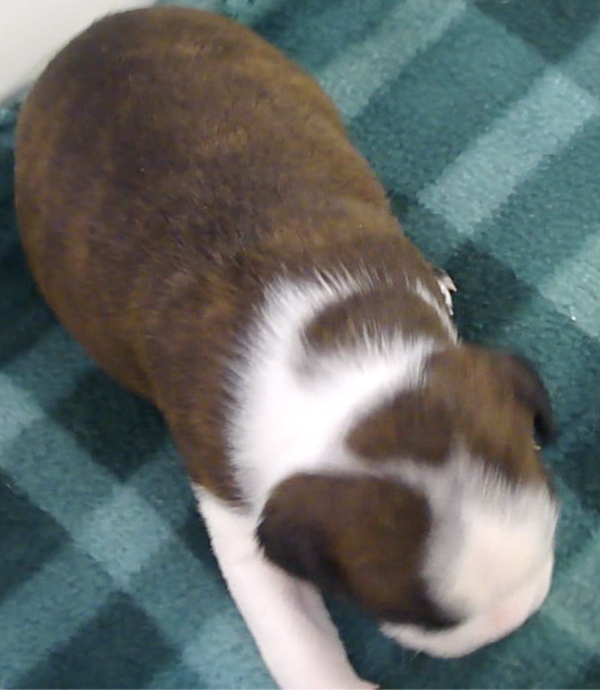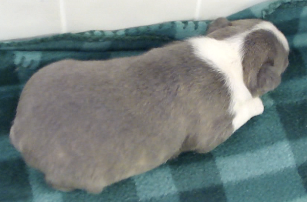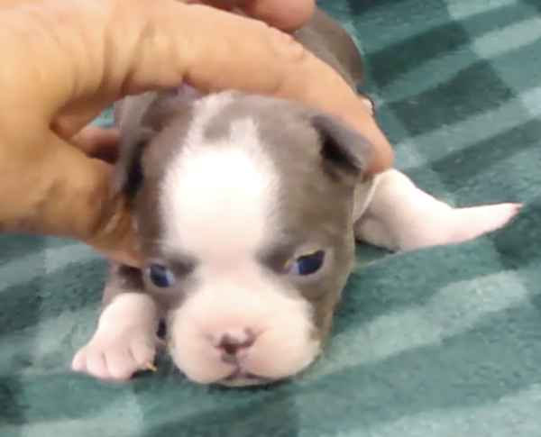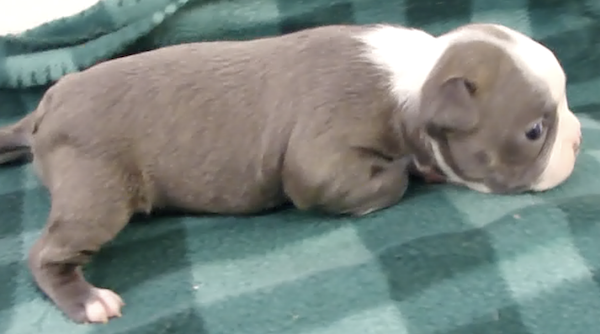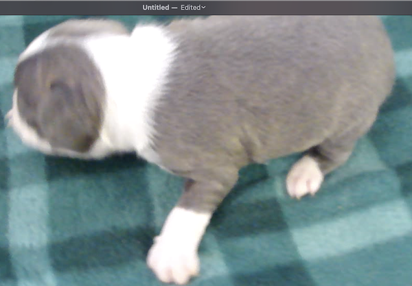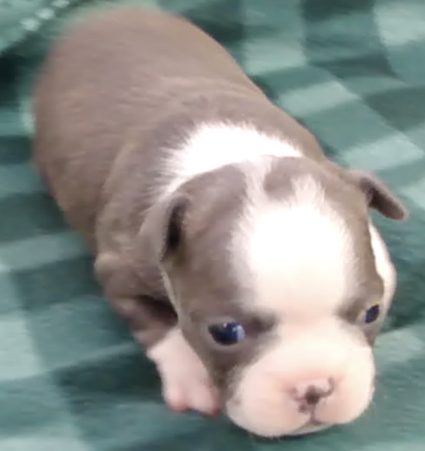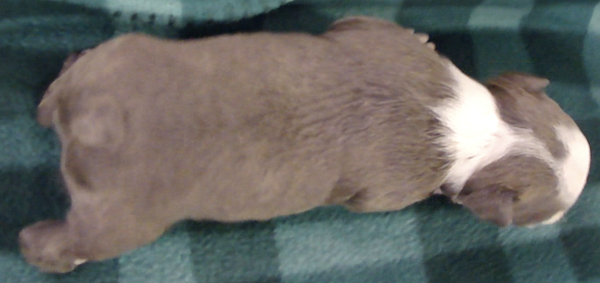 This adorable little girl will have a lovely usual colored coat. Looks like she may be a “lavendar” instead of a true blue. This is a very hard color to come by. Also, note the nose is filling in.